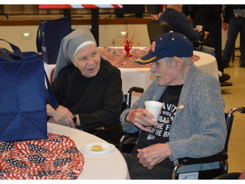 Residents were delighted by a surprise visit from Alderman Brian Hopkins, who delivered a heartfelt speech thanking our vets for their sacrifice as well as their courage. After the presentation, Residents, guests, staff and Sisters enjoyed coffee and pastries, telling stories, making new friends and simply loving being with each other.