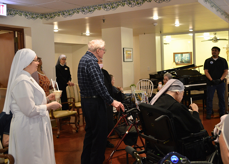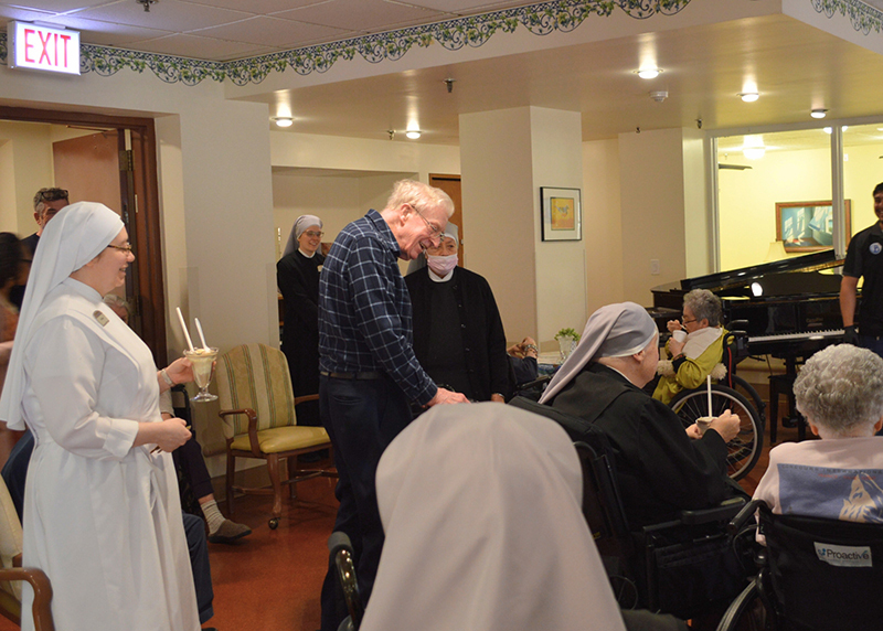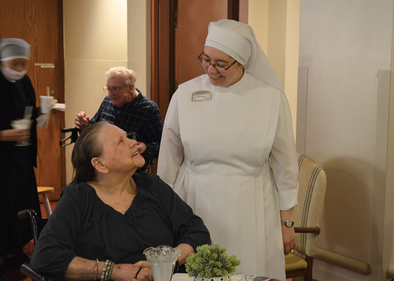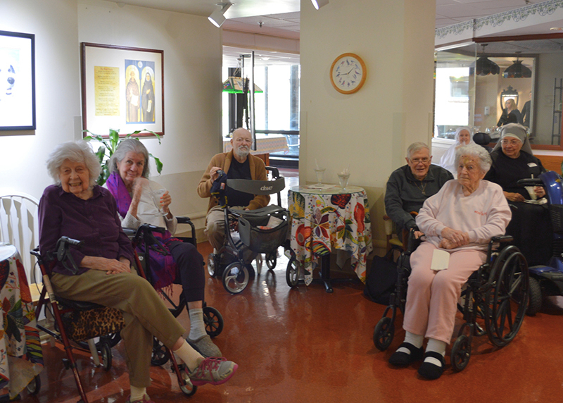 St. Mary’s Home was abuzz with anticipation all of May 8th, after white smoke emerged from the chimney of the Sistine Chapel. Walking down the halls of our Home, you could hear from Staff computers and Resident TVs the livestream from the balcony of St. Peter’s Basilica. Everyone was wondering who the next pope would be. After the announcement of the new pope, St. Mary’s Home came to life! Celebratory bells rang, and “Sweet Home Chicago” played loud and proud on our loudspeaker system! Best of all, Residents and staff were surprised with a root beer float party! Sisters broke out the fancy ice cream glasses and handed out deliciously sweet treats to anyone who wanted one.