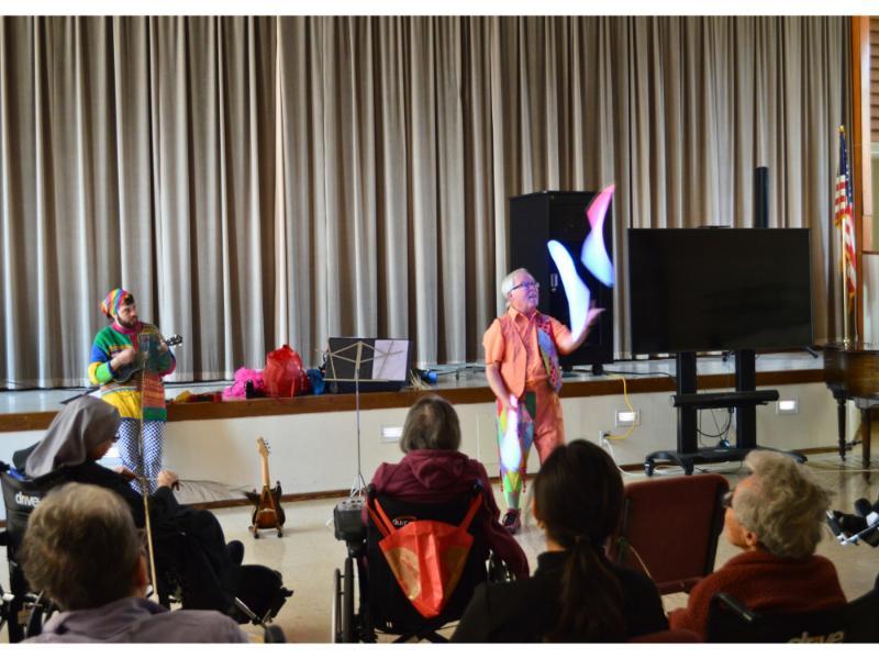 In the words of our Mother foundress St. Jeanne Jugan, “My little ones, we should always be cheerful, for our old people do not like long faces.” We are so glad the artists at Vaudeville Chicago could come to put smiles on our Residents’ faces. They are proof that laughter truly in the best medicine. Send in the clowns!