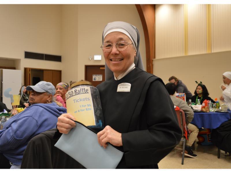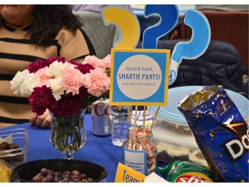 As guests entered the brightly decorated auditorium, they were able to get a taste of the event by testing their knowledge on our trivia wall. Guests were encouraged to BYOB -Bring Your Own (Picnic) Basket, and Bring Your Own Brains! – for a night of trivia fun. Trivia Master Rex kept the good vibes going with upbeat tunes as both teams and Sisters combined their brain power to think hard on some tricky trivia questions. Along with competing for both bragging rights as well as the grand prize, prizes were also given out for the quirkiest team name. This year’s pun-iest name? “Quiz Me, I’m Irish!” Attendees and Sisters agree: this event always puts the “fun” in “fundraiser!”